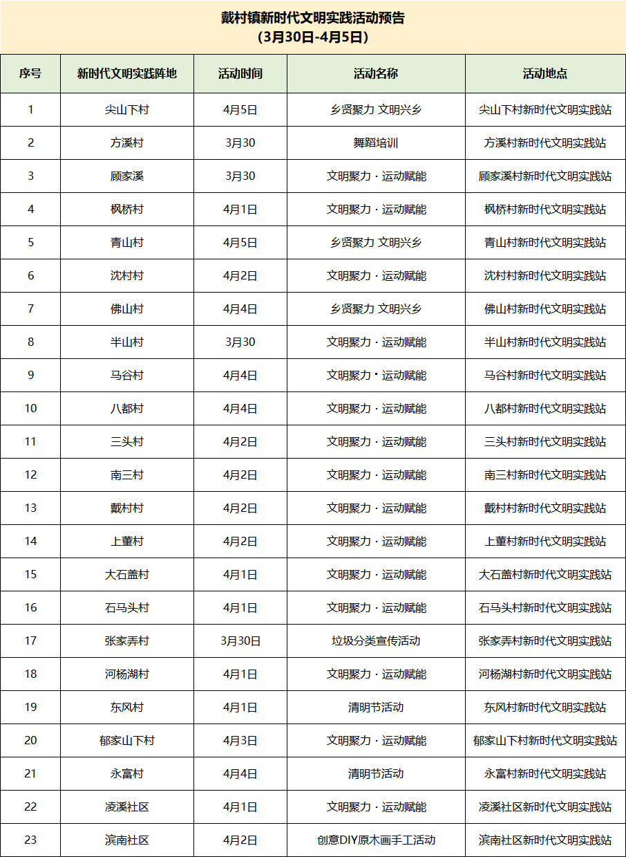 戴村鎮(zhèn)新時(shí)代文明實(shí)踐活動(dòng)預(yù)告(3月30日-4月5日)