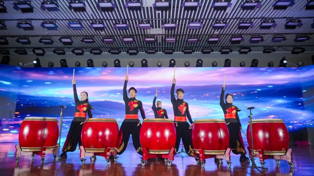 河上鎮(zhèn)鼓行者團隊現(xiàn)場表演《戰(zhàn)鼓》,以鼓為媒、以聲聚力,用最熾熱的激情、最鏗鏘的節(jié)奏,為河上奏響砥礪奮進(jìn)、再創(chuàng)佳績的壯闊序曲。