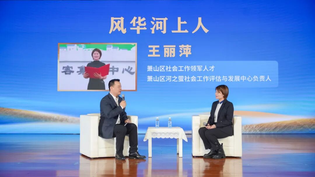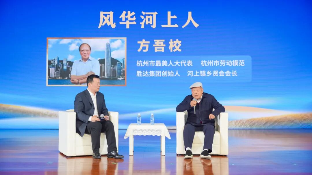 鎮(zhèn)黨委委員陶梁主持風(fēng)華篇章及訪談環(huán)節(jié),四位“風(fēng)華河上人”代表——恒心筑企、勇立潮頭的杭州市最美人大代表方吾校,匠心守藝、傳遞薪火的“蕭山好人”傅乃成,初心如炬、情暖鄉(xiāng)里的社會組織負(fù)責(zé)人王麗萍,以及赤心逐夢、不負(fù)韶華的籃球達(dá)人謝凱波依次登臺講述自己的風(fēng)華故事。