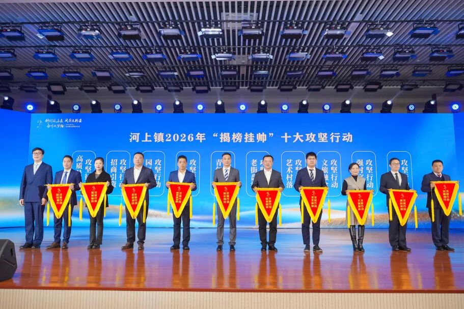 活動現(xiàn)場發(fā)布了河上鎮(zhèn)2026年十大“揭榜掛帥”攻堅行動,公布了2025年高質(zhì)量發(fā)展重點貢獻(xiàn)企業(yè)、2025年高質(zhì)量發(fā)展重點優(yōu)勢企業(yè)、2025年度優(yōu)秀村社。
