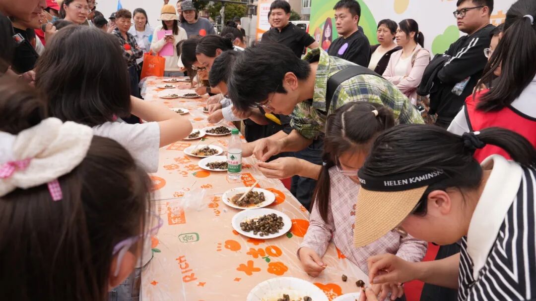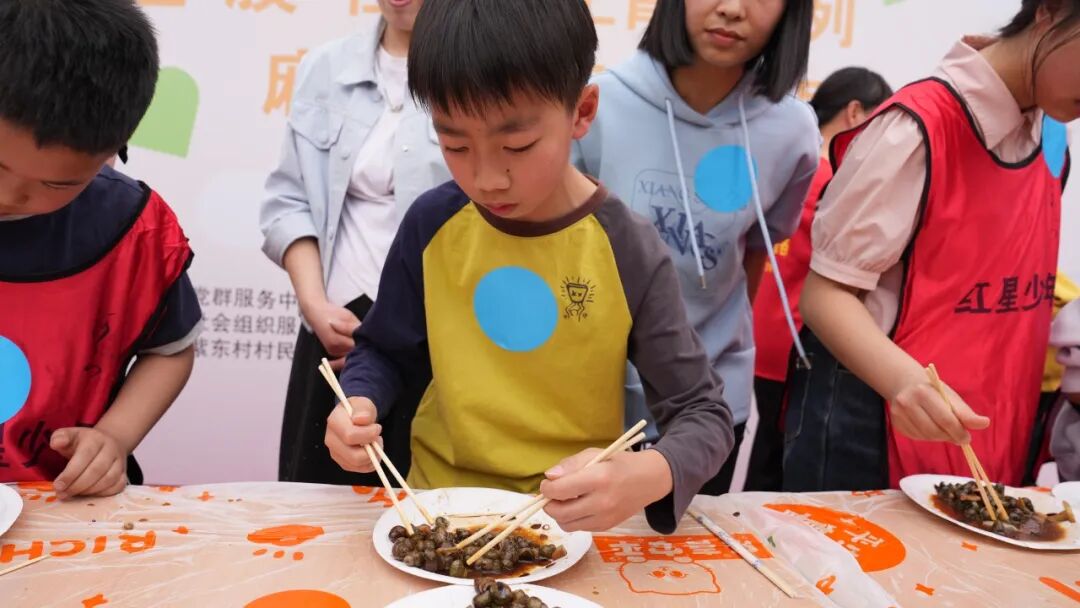搭檔分工協(xié)作,各組分別派出萌娃代表與成人代表參與夾螺螄挑戰(zhàn)。規(guī)則明確,成人代表參與需要額外加時。選手們用筷子將螺螄從一盤穩(wěn)穩(wěn)夾取至另一盤。孩子們專注認(rèn)真,隊友們在一旁加油鼓勁,現(xiàn)場氛圍熱烈十足。