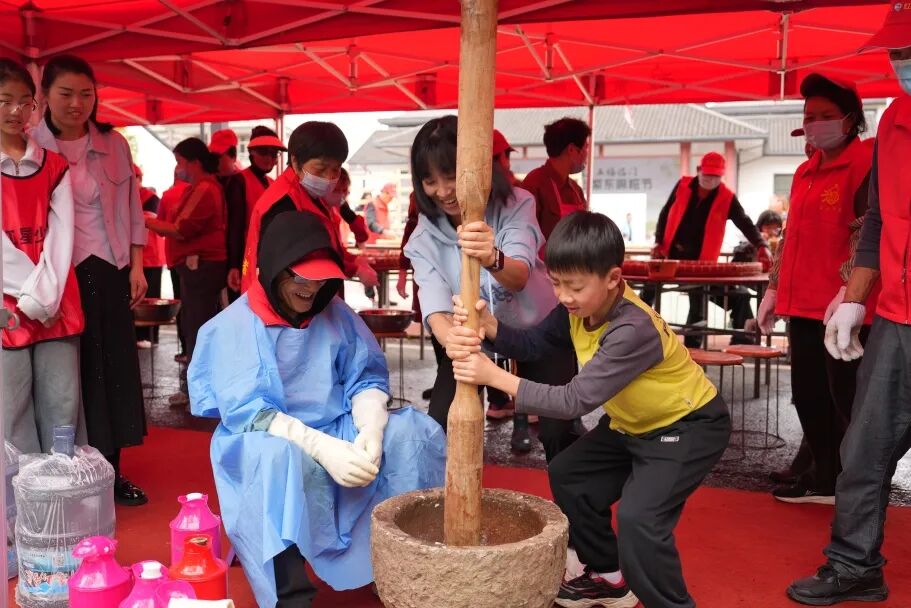 活動正式開始前,現(xiàn)場設(shè)置了非遺麻糍體驗區(qū)。在村民的耐心指導(dǎo)下,參與者輪番上陣,體驗手打麻糍,感受傳統(tǒng)美食的制作樂趣,軟糯香甜的麻糍香氣彌漫全場,春日的熱鬧與煙火氣直接拉滿。