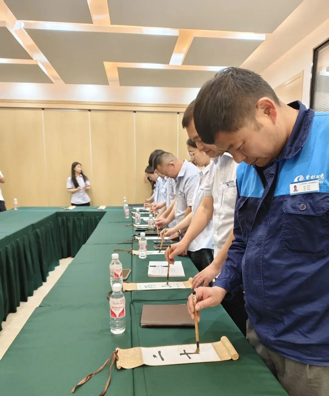宣講結(jié)束后,卷軸書寫活動將現(xiàn)場氛圍推向高潮。卓尚員工們共同執(zhí)筆,在卷軸上寫下“紀念‘兩山’理論二十周年,推進生態(tài)文明闊步向前”。一筆一畫間,是對“兩山”理論的致敬,更是對綠色發(fā)展的莊嚴承諾。這份凝聚眾人心意的卷軸,不僅成為活動的珍貴紀念,更象征著大家守護綠水青山的堅定決心。