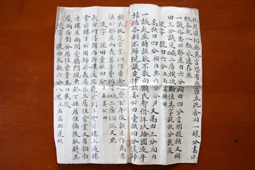 韓爺爺為了這次直播,還貼心準備了老物件“寶貝”。只見他小心翼翼地拿出了家中世代傳承的分書、契約等。泛黃的紙頁上字跡清晰,不僅記載著家族的歲月變遷與家業(yè)沿革,更藏著老一輩勤儉持家、忠厚傳家的家風底蘊。