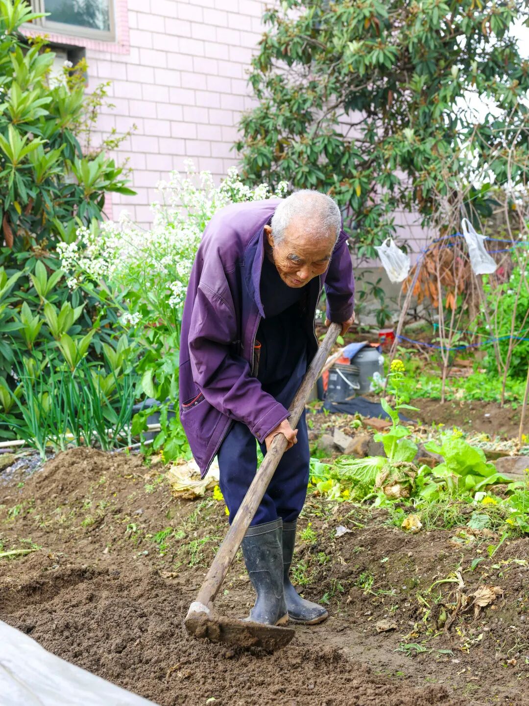 這位耄耋老人,就是臨浦鎮(zhèn)浦二村的韓紀根爺爺。他年近期頤,依舊耳聰目明、身體健朗,每天耕耘田園、樂享規(guī)律生活。
