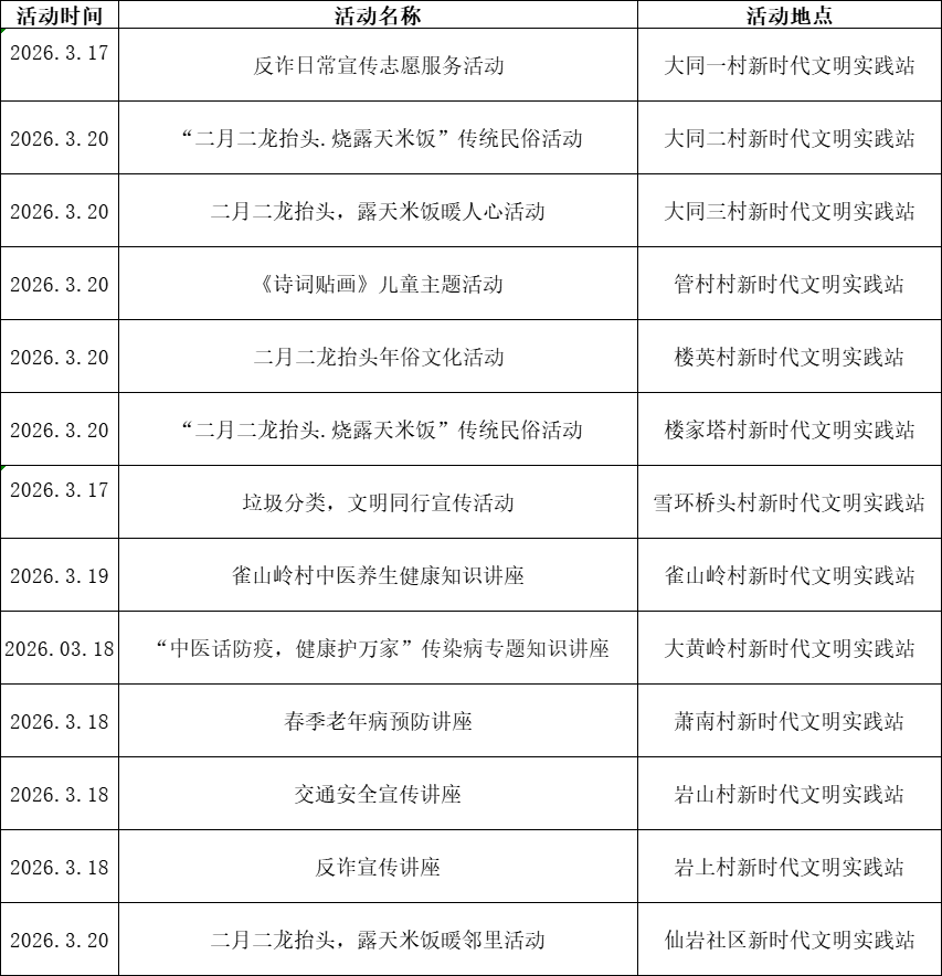 樓塔鎮(zhèn)新時代文明實踐活動預告