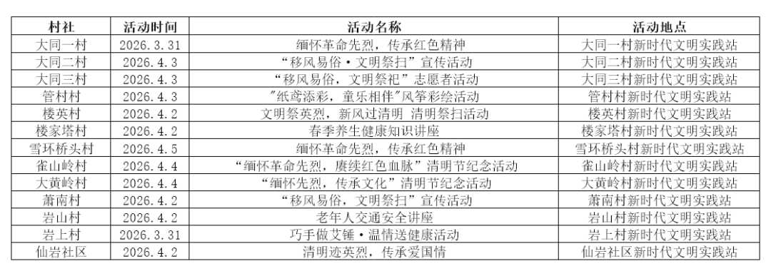新時(shí)代文明實(shí)踐活動(dòng)預(yù)告(3.30—4.5)