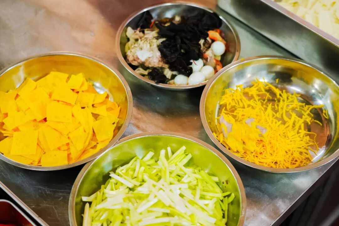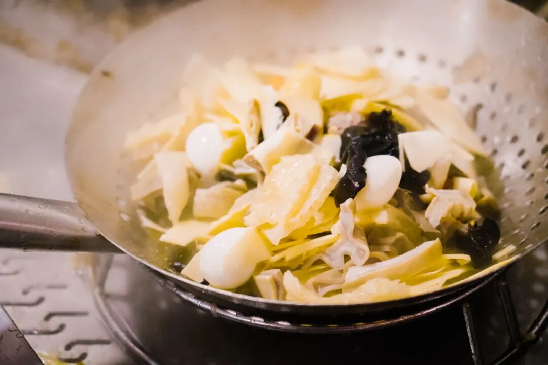 鵪鶉蛋、水發(fā)肉皮、韭黃等