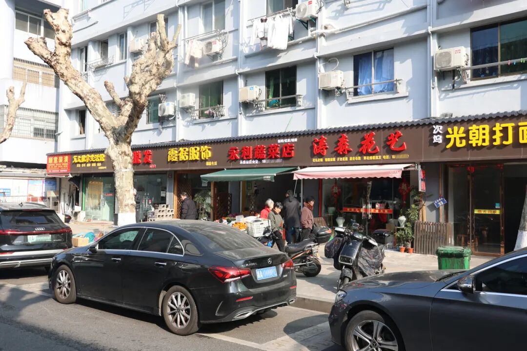 順著金家橋路往里走,蔬果店一早就擺上了新鮮的瓜果,水產店里魚蝦在盆里活蹦亂跳,住在附近的居民,拎著菜籃子優(yōu)哉游哉地逛,買完菜還能在路口嘮上會家常。