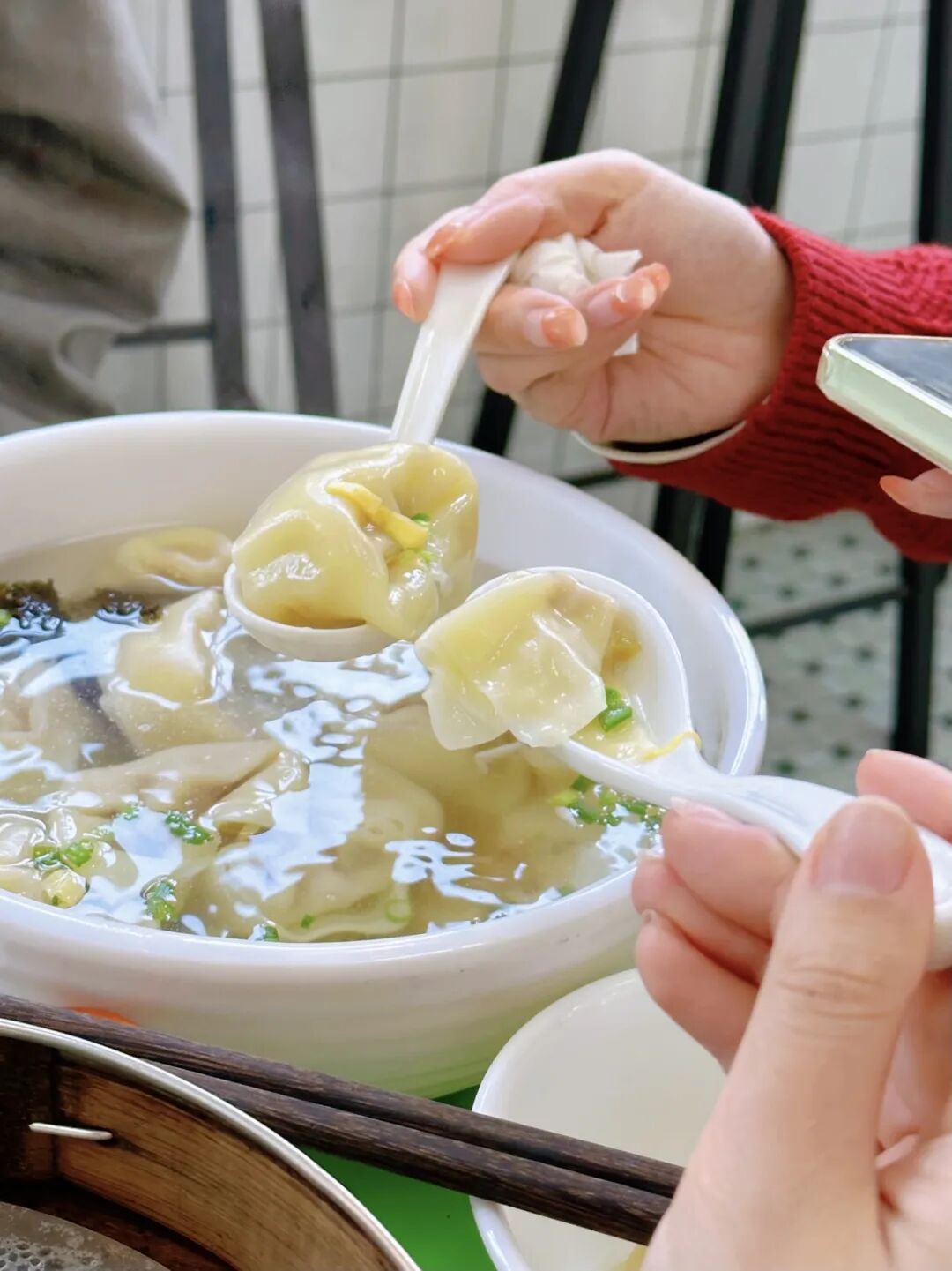 敲餛飩是溫州特色小吃。小編第一次吃的時(shí)候,就被這一碗餛飩驚艷住了!餛飩湯底中有肉末、蝦皮、油條段、蛋絲、紫菜、小青菜,料多到堪比三鮮湯。一口餛飩,一口湯,再搭配店里安靜的氛圍,真的不要太美好啦!
